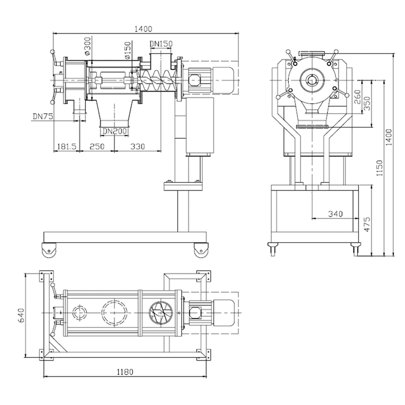 SF-250 | 400~1000L/h | 3×380V | 250~750r/min | 2.2KW | ~80 | < 8mm | 250kg |