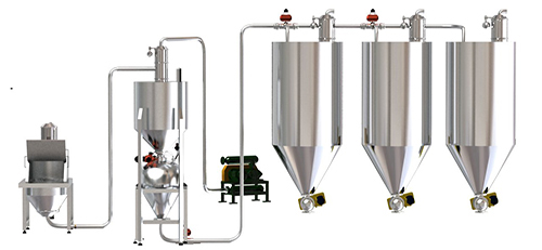 小袋投料站:該系統由人工卸料倉、防壓型投料平臺、下料倉、安全篩網、過濾系統、集塵系統、反吹氣囊等部件組成。