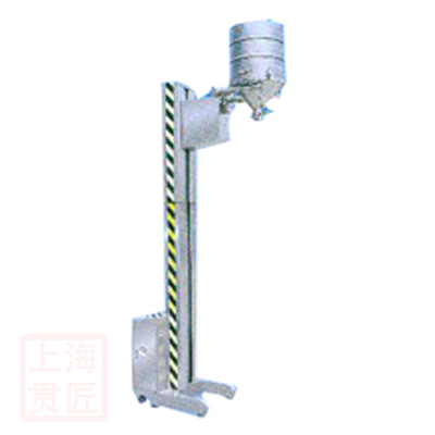 該機(jī)主要由底盤、立柱、提升系統(tǒng)和翻轉(zhuǎn)系統(tǒng)等組成。工作時(shí)先將物料放入料桶,再啟動(dòng)提升按鈕,將料倉提升到所需高度,然后啟動(dòng)翻轉(zhuǎn)按鈕,料倉即可翻轉(zhuǎn)180度,旋轉(zhuǎn)立柱與加料設(shè)備密閉對(duì)接,進(jìn)行加料操作。